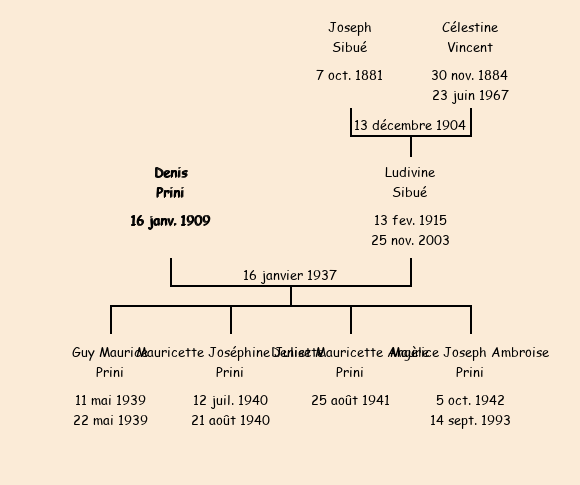 Epouse : Ludivine Sibué (21 ans, née à Fontcouverte le 13 février1915, de Réortier Dessous), fille de feu Joseph et de Célestine Vincent |