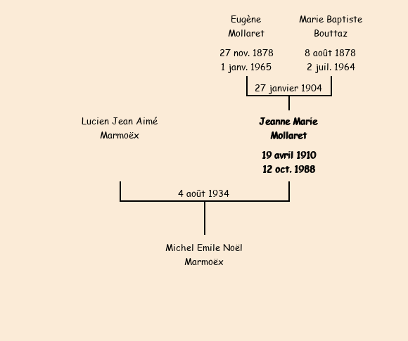Mariée (24 ans) avec Lucien Jean Aimé Marmoëx le 4 août 1934 à Saint-Jean-de-Maurienne |
