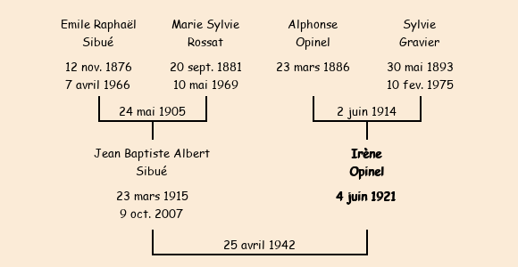 Epouse : Irène Opinel (20 ans, née à Albiez le Vieux le 4 juin1921, domiciliée à Gévoudaz), fille de feu Alphonse et de Sylvie Gravier |