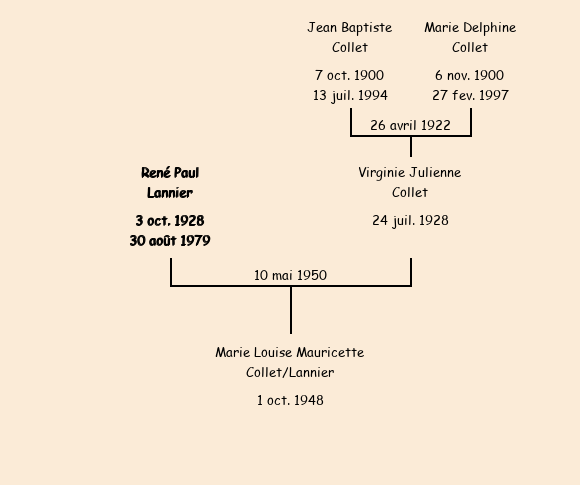 Epoux : René Paul Lannier (21 ans, né à la Ferté Loupière (Yonne) l03 octobre1928, domicilié à Neuilly (Yonne), cuisinier), fils de Paul (boulanger) et de feue Hélène Lucie Lecomte |