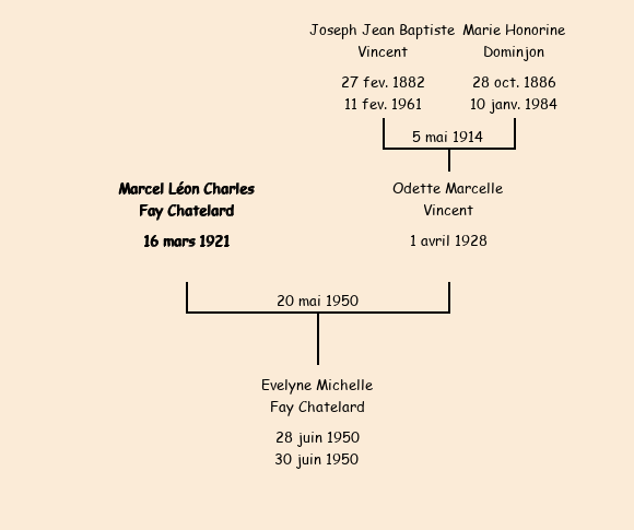 | Epoux : Marcel Léon Charles Fay Chatelard (29 ans, né à Saint Jean d'Arves le 16 mars1921, domicilié à Saint Jean d'Arves, transporteur), fils de Jean Eugène (négociant) et de Ernestine Léontine Vial |