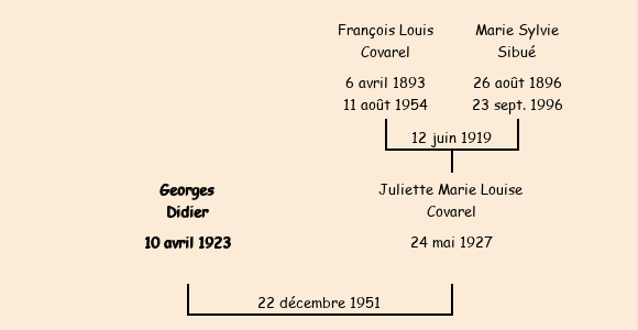 Epouse : Juliette Marie Louise Covarel (24 ans, née à Fontcouverte le 24 mai1927, de Vers le Rieux), fille de François Louis et de Marie Sylvie Sibué |