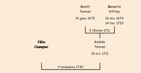 A son mariage : fils de Jean Baptiste et veuf de Françoise Favre fille de Claude.