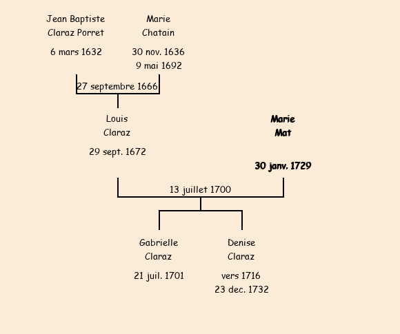| Epouse : Marie Mat (de Jarrier, habitant Saint Jean depuis 6 ans), fille de feu Pierre |