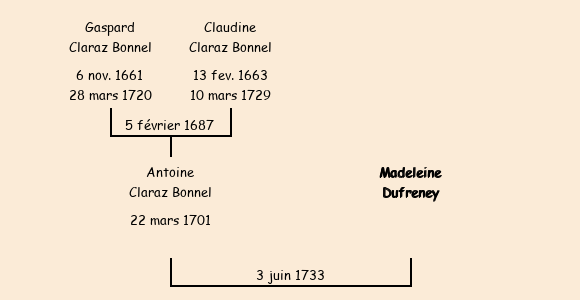 Epouse : Madeleine Dufreney (de Saint Jean, veuve de Sébastien Chapel d'Albiez le Jeune), fille de feu Mathieu |