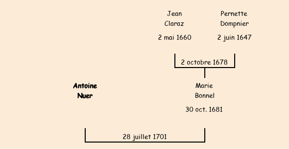 Epouse : Marie Claraz Bonnel (habitant Saint Jean depuis 5 ans), fille de Jean |