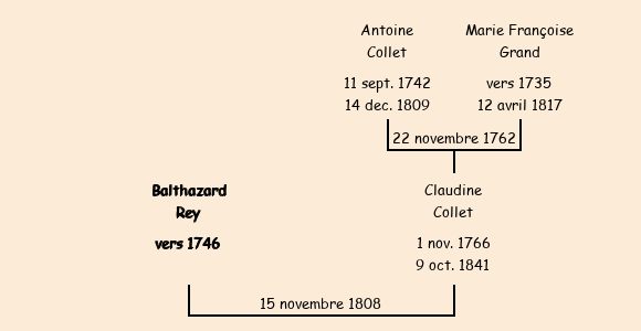 A son mariage : de Sainte-Marie-de-Cuines, fils de feu Jean Baptiste et de Claire Chaminot, veuf de Madeleine Cécile.