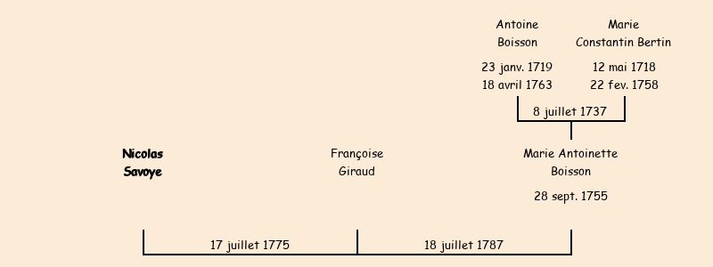 Marié avec Marie Antoinette Boisson (31 ans) le 18 juillet 1787 à Saint-Jean-de-Maurienne |