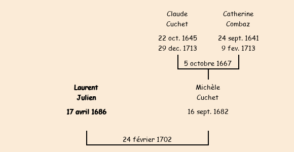Epoux : Laurent Julien (d'Albiez le Vieux), fils de Blaise |