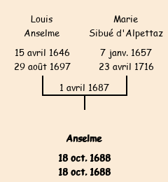 Marie Sibué d'Alpettaz (°1657 +1716) - 31 ans |