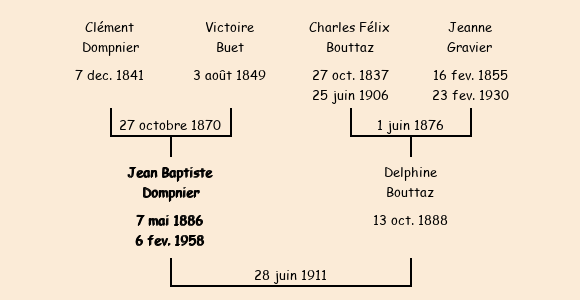 Marié (25 ans) avec Delphine Bouttaz (22 ans) le 28 juin 1911 à Saint-Jean-de-Maurienne |