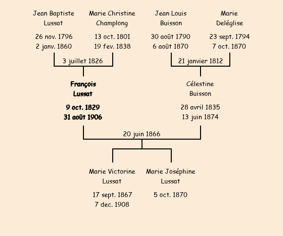 | Marié (36 ans) avec Célestine Buisson (31 ans) le 20 juin 1866 à Saint-Pancrace |