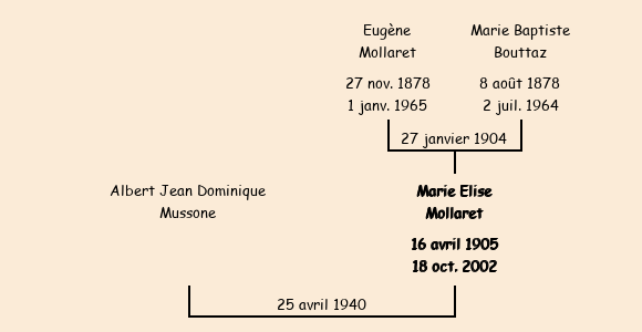 Mariée (35 ans) avec Albert Jean Dominique Mussone le 25 avril 1940 à Villargondran |