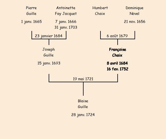 Mariée (37 ans) avec Joseph Guille (28 ans) le 19 mai 1721 à Saint-Sorlin-d'Arves |