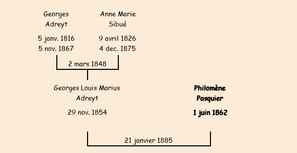 Mariée (22 ans) avec Georges Louis Marius Adreyt (30 ans) le 21 janvier 1885 à Saint-Jean-de-Maurienne |