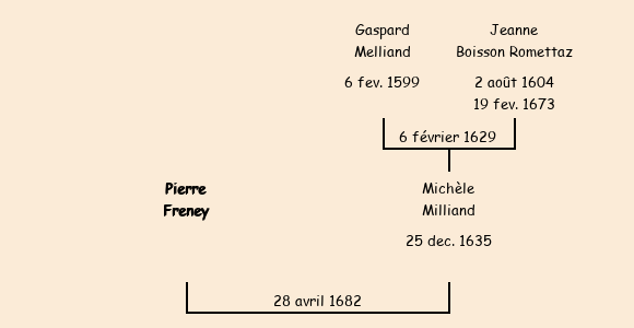 Acte de mariage de Pierre Freney avec Michèle Melliand le 28 avril 1682