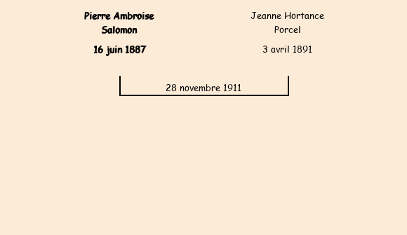 Epouse : Jeanne Hortance Porcel (20 ans, née à Saint Jean d'Arves le 3 avril1891), fille de Louis Eugène (48 ans, domicilié aux Tunnels, cantonnier) et de Delphine Vial (51 ans) |