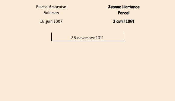Epouse : Jeanne Hortance Porcel (20 ans, née à Saint Jean d'Arves le 3 avril1891), fille de Louis Eugène (48 ans, domicilié aux Tunnels, cantonnier) et de Delphine Vial (51 ans) |
