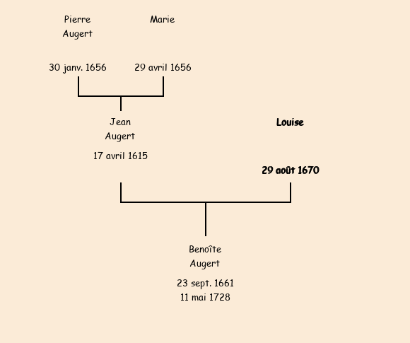 En tant que marraine de Gaspard Claraz (5 février 1666), elle est dite épouse de Jean Augert et fille de Pierre. |