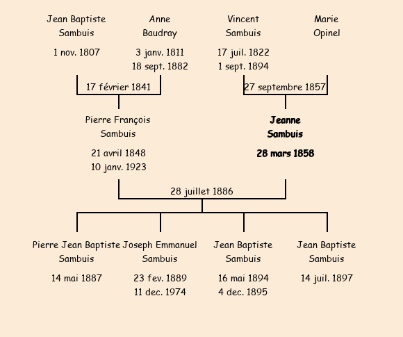 Mariée (28 ans) avec Pierre François Sambuis (38 ans) le 28 juillet 1886 à Albiez-Montrond |
