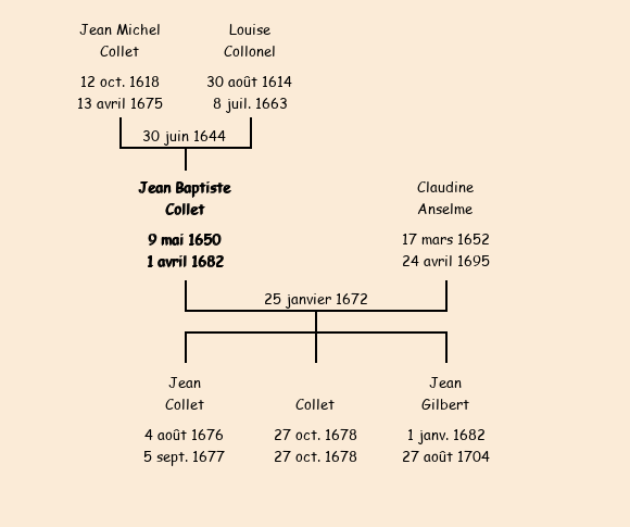 Mère : Louise | Marraine : Jeanne Gilbert Collet (fille de Michel) |