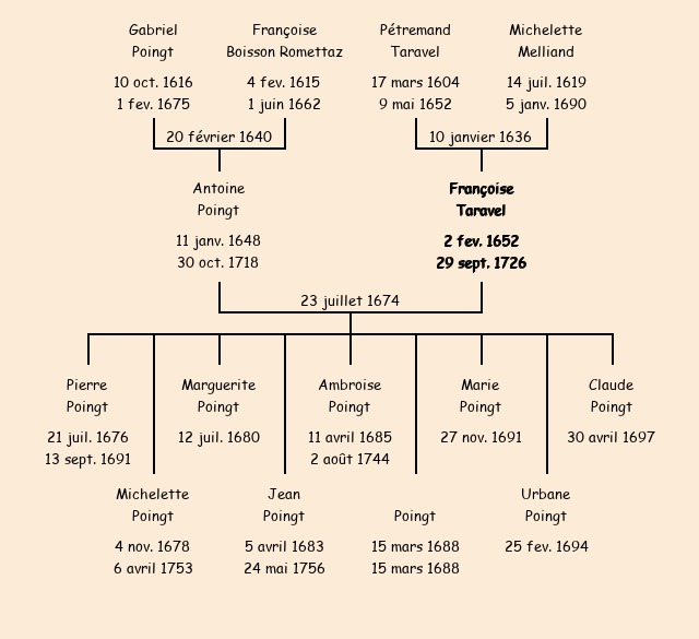 Mariée (22 ans) avec Antoine Poingt (26 ans) le 23 juillet 1674 à Fontcouverte ![]() |