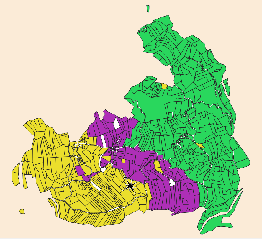 des Lambert à gauche en vert, dont les parcelles sont relativement bien