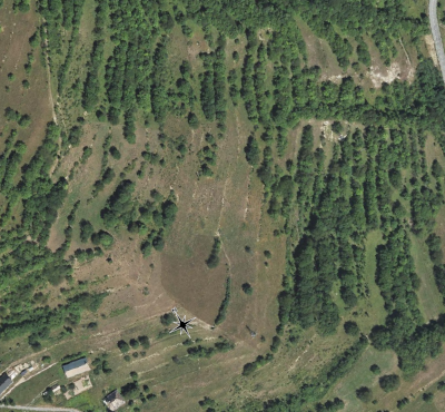 Par contre, la photographie aérienne de la zone illustrée ci‑dessus, réalisée de façon récente par l'IGN, montre l'évolution du paysage. Nombre de murgers de limites de parcelles ont été envahis par les arbustes devenus des arbres suite à l'abandon des cultures.
