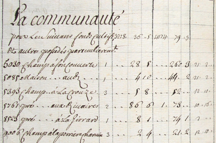 La lecture, même superficielle, de la tabelle met en évidence que le phénomène d'indivision des propriété à Fontcouverte est très fréquent en 1730. Ce phénomène est souvent noté dans la bibliographie concernant les paroisses savoyardes de montagne.
