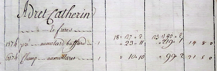 Il s’agit donc ici d’une propriété de Catherin Adret et de ses frères. Les copropriétaires ont‑ils hérité récemment ou cultivent ils chacun une partie depuis longtemps sans avoir régularisé l’héritage ? Quelles sont les prérogatives de Catherin par rapport aux autres copropriétaires pour que son nom soit porté en tête ?
