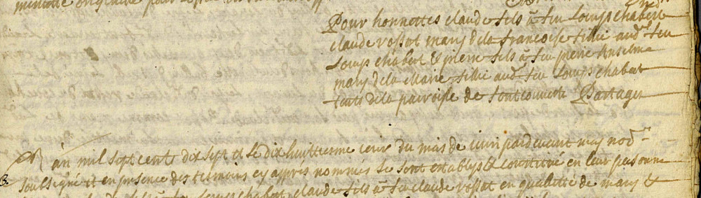 Nous traitons tout particulièrement le testament de Claude Chabert de 1759 dont les conséquences dans le temps sont quelque peu étendues par les consignes du sel et recensements jusqu'à la fin du XVIIIe siècle pour savoir qui vit où et a donc hérité.