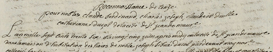 Intrigués par ce patronyme noble et le nom ou prénom douteux Chavlot, nous tentons de rechercher des informations sur ces personnes dans les registres du tabellion de Saint‑Jean-de‑Maurienne.