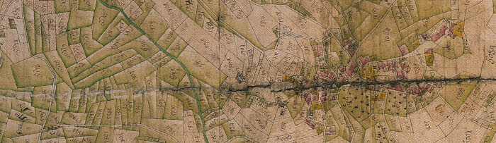 A partir de la mappe originale du géomètre, des artistes aussi brillants que nombreux vont assurer l'élaboration de deux copies qu'ils vont passer au lavis de diverses couleurs, assurant ainsi l'aspect esthétique définitif des documents mais aussi leur valeur informative facilement accessible. En effet, un code de couleurs est établi pour représenter chaque parcelle en fonction de l'activité qui y est pratiquée : prés en vert, champs en brun strié pour rappeler les sillons du laboureur, rochers en grisé, bâti en rouges divers, figuration d'arbres pour différencier les couverts plus ou moins denses... Il est alors facile, au moins en principe, de reconnaître chaque parcelle décrite dans le livre du géomètre. Les cours d'eau sont teintés de vert et les confins avec les paroisses voisines de différentes couleurs.