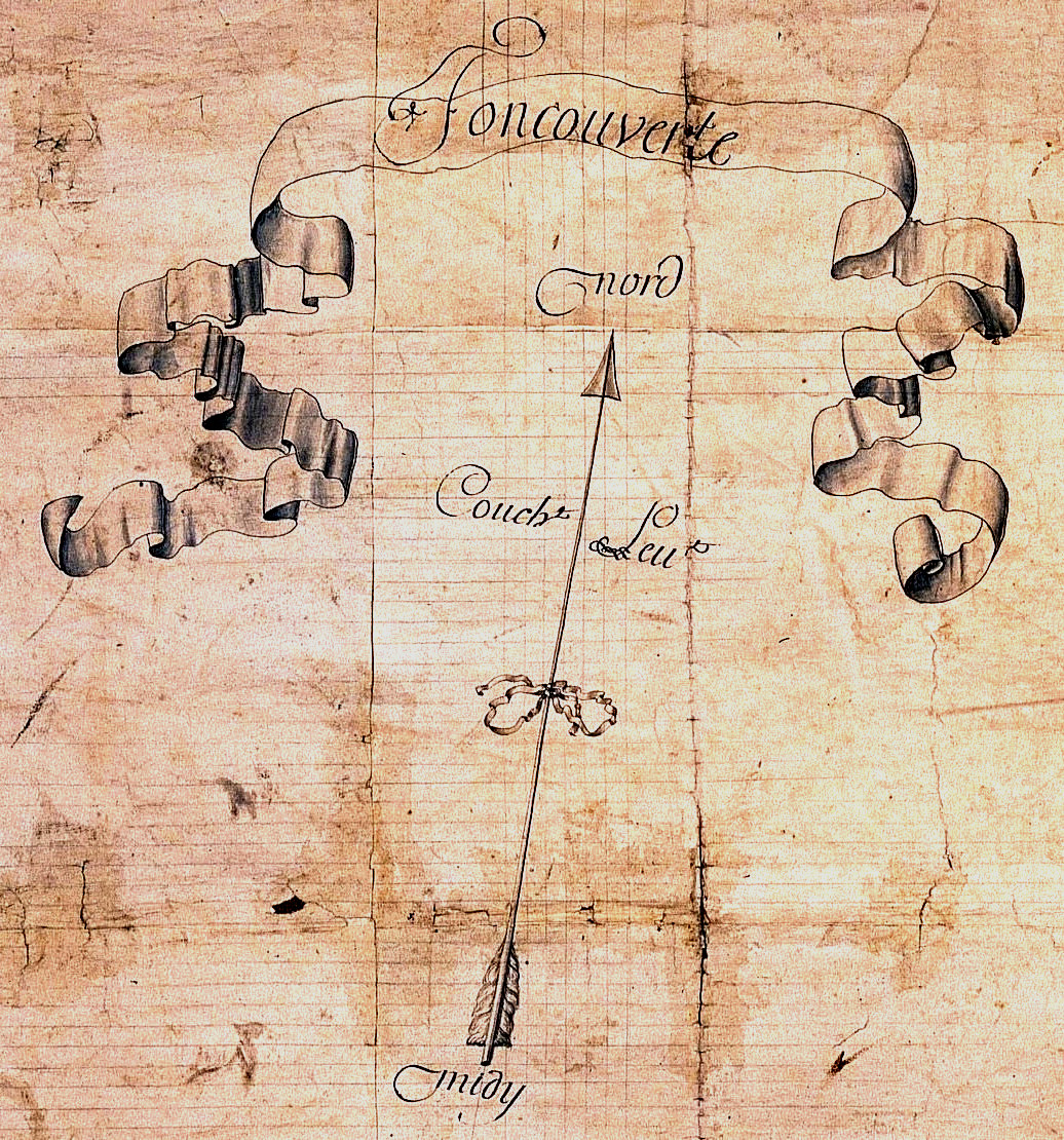 Enfin, une belle rose des vents indique le nord... mais lequel, celui de la boussole ou celui du soleil qui sont différents en 1730) ? Méfiez‑vous en, l'indication peut être parfois plus esthétiquement flatteuse que scientifiquement objective !