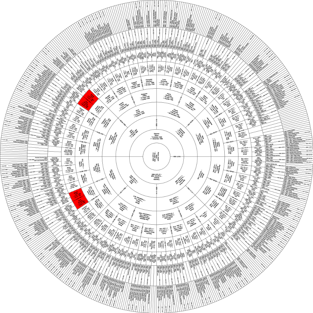 La date de naissance de la personne au centre de la roue conduit alors à une remontée généalogique d’autant plus grande que cette date est plus récente. Sur trois siècles, on peut s'attendre à observer une dizaine de générations.