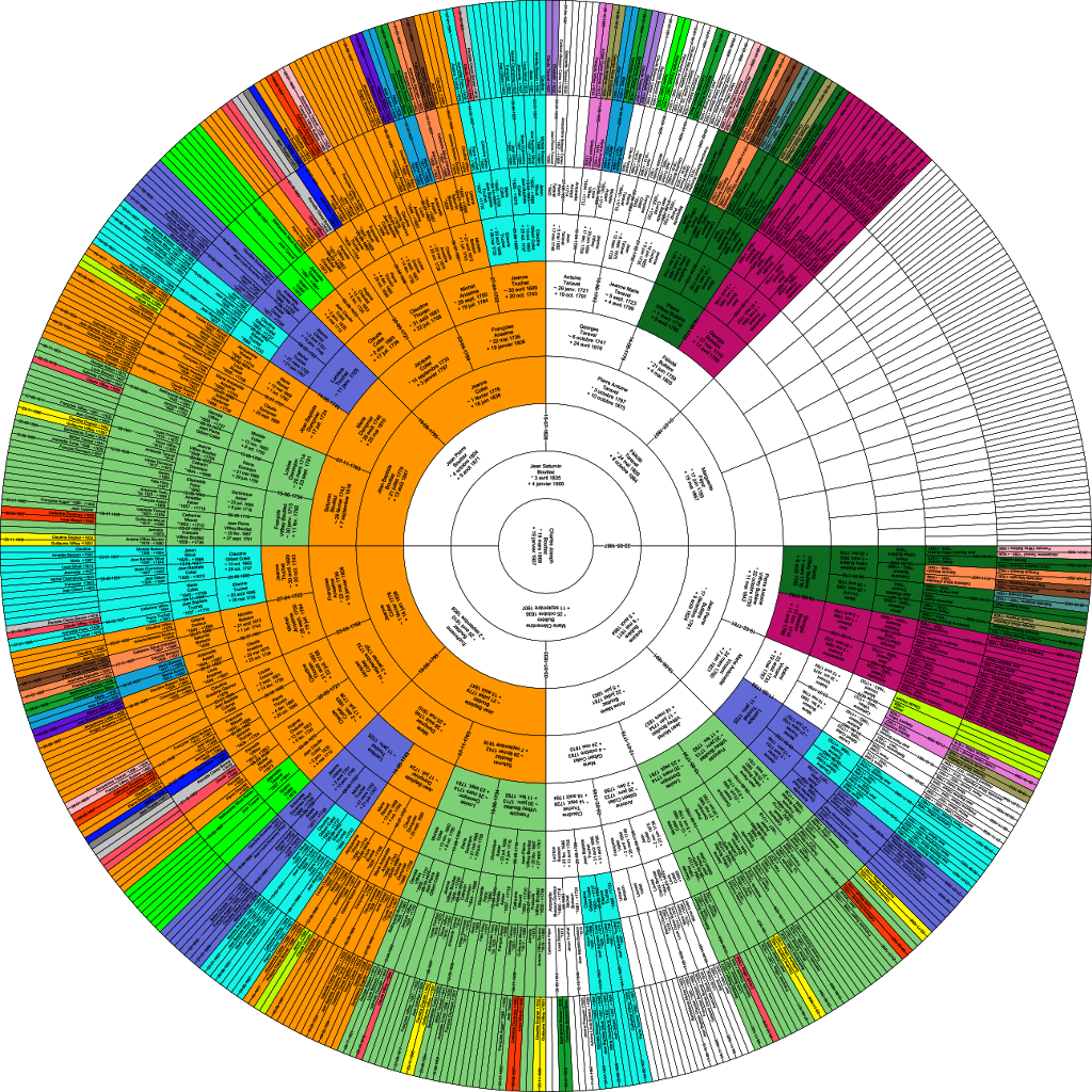 Nous avons l’habitude de représenter nos ascendants sous forme d’arbres ou de roues sans nous rendre compte que nous demandons à ces représentations d’avoir deux fonctions bien différentes, parfois incompatibles, autant dire de faire des prouesses.