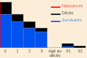 Un graphique permet de représenter simplement la vie des membres d'une population avec ses évènements marquants.