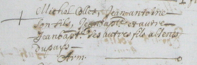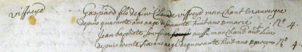 Ci-contre le rôle de hommes susceptibles de porter les armes de 1689. Michel Collet aurait des fils portés absents. C'est important si on doit défendre la frontière du Duché ! Mais où faut-il aller les chercher en cas de mobilisation ? D'ailleurs, nous ne retrouvons que Louis qui effectivement ne semble pas avoir fini sa vie à Fontcouverte, son frère Noé étant mort à un mois... et ils n'ont pas d'armes ! En tout cas, nous savons calculer l'âge de ces hommes et, heureusement, d'autres recencements sont plus utilisables... avec un peu de mal.