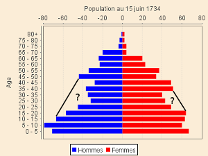 Les pyramides des âges élaborées à partir des dénombrements peuvent présenter des anomalies caractéristiques de mouvements de la population. Des déficits d'effectif dans certaines tranches d'âge assez précises et n’évoluant pas dans le temps peuvent être considérés comme des indices laissés par des personnes émigrées, au moins temporairement, particulièrement les hommes.