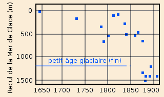 climat. E. Leroy Ladurie donne le retrait de la Mer de Glace ci-contre