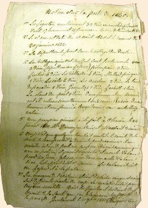 7° Les marques de l’épidémie étaient des taches rouges et noires sur différentes parties du corps. La maladie n’était pas toujours mortelle. Voir les registres et les décrets du Comité de la santé que j’ai placés avec les registres de la paroisse.