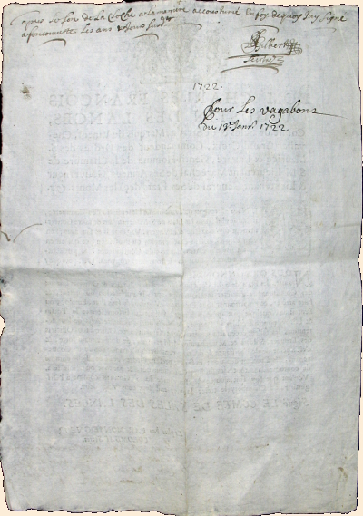 Alors que l'épidémie est probablement sur son déclin, voire terminée en Provence, un ordre est encore donné le 13 janvier 1722 par le Gouverneur et Lieutenant Maréchal des Etats en deça des Monts pour arrêter « tous étrangers, vagabonds sans état, emploi ou profession quelque part qu'ils habitent ». La publication en est faite à Fontcouverte le 25 janvier courant par le secrétaire Jean Gilbert suivant la coutume.