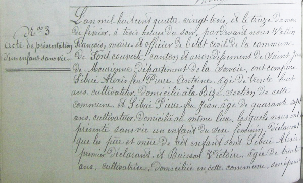 Il est ainsi impossible de distinguer l'état de vie d'un nouveau-né très rapidement décédé. Nous le considérons alors comme mort-né même s'il a pu survivre quelques instants comme l'acte le laisserait parfois croire... pour être enterré au cimetière l'enfant doit être baptisé et pour être baptisé il doit être vivant, alors les témoins, voire le curé, sont arrangeants pour les pauvres parents.