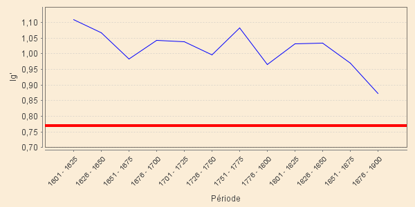 L'anomalie de la première moitié du XVIIe siècle, si elle est significative, pourrait donc avoir une origine de nature démographique. La chute de Ig* après 1850 imputable, a priori, à l'effet d'une tendance à la limitation des naissances mérite, de son côté, une confirmation.