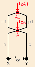 Le terme [½]ni+pi represente la consanguinité due aux chemins A - x et A - y tandis que le terme fzAi * [½]ni+pi traduit la transmission par ces chemins de la consanguinité héritée par A de ces ancêtres.