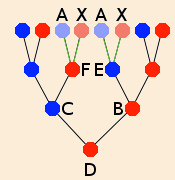 l’arbre généalogique classique des ascendants de D, A apparaît