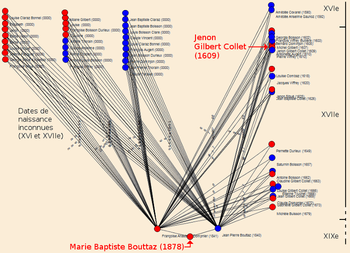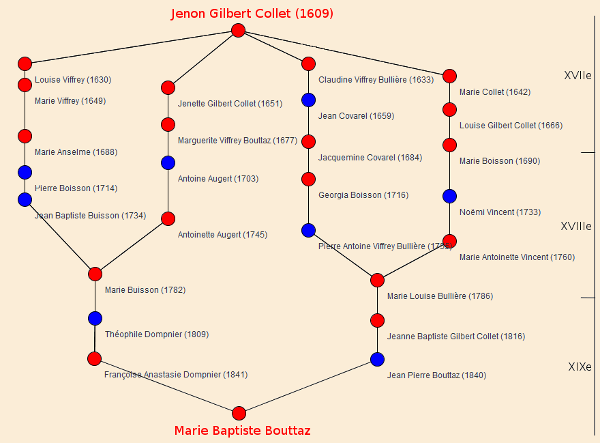 quatres siècles. Voici le graphe des ascendants de Marie Baptiste Bouttaz