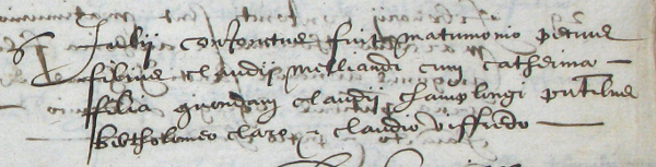 Les nom et prénom des témoins sont toujours mentionnés. Ils peuvent apporter des informations utiles à l'identification des époux mais l'indication de la parenté des témoins avec les époux n'apparait pratiquement pas avant l'époque française.