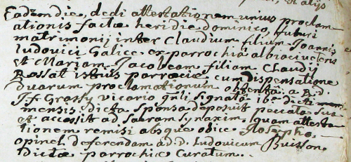 Les actes de mariage précisent, généralement à partir de 1675, les empêchements canoniques de mariage et les dispenses qui ont être obtenues du vicaire général ou de l'évêque et parfois même du Pape suivant la gravité du cas (nous avons enregistré les dispenses religieuses constatées à la cure pendant l'époque française).