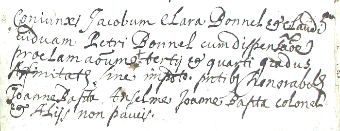La lecture des actes de mariage réserve parfois des surprises étonnantes. Par exemple, un veuf se remarie trois semaines après le décès de sa femme, des bans n'ont pas le temps d'être publiés et des dispenses de consanguinité ou d'empêchement pour liens d'affinité (remariage d'un veuf avec la sœur de son épouse défunte entre autre) sont obtenues rapidement de l'évêque.